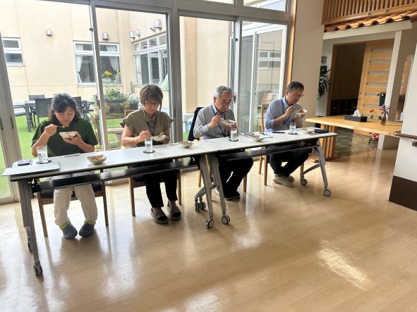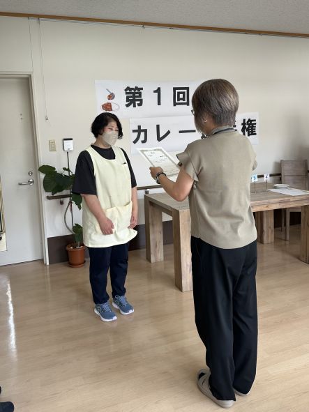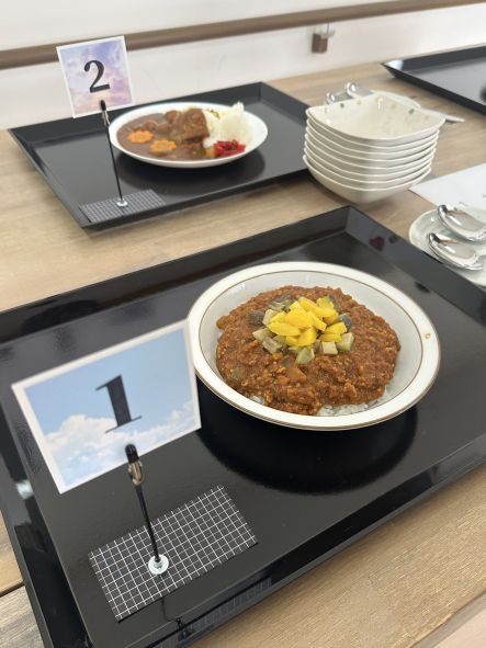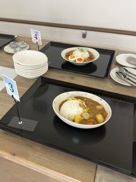 5月22日(木)、3階で第1回ユニット対抗カレー選手権を行いました。盛り付け、味、びっくり度で採点し、第1回の優勝はユニット利根でした。どのカレーも美味しくて、甲乙付け難かったのですが…コクのあるバナナカレーが僅差で優勝を飾りました。次回の対抗戦はどうなるか⁈乞うご期待です(^▽^)/