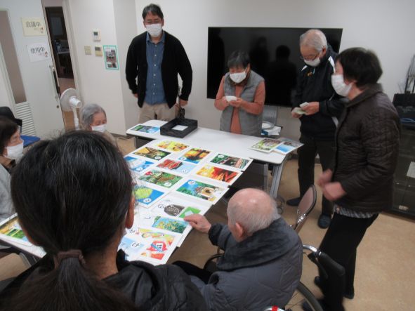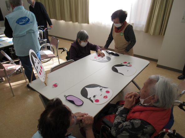 1月9日(金)、22日(木)の2日間で、天理教・ナルク銚子のボランティアの皆さんのご協力をいただきまして『笑う門には福来る 新春初笑い大会』を行いました。新春ということで、かるたと福笑いを行いました。かるたは地元にちなんだ題材の銚子かるたを使用し、一つ読まれる度に銚子の出来事やそれぞれの由来を懐かしみ、読み手のボランティアさんも丁寧に分かりやすく進行されました。福笑いも「昔やったわね~」「できるかしら…」と緊張されながらも楽しまれ、短い時間でしたがボランティアさんと共に笑顔があふれていました。ありがとうございました。