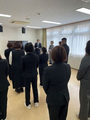 4月1日(水)、辞令交付式を執り行いました。新たな年度を迎え、笹本理事長より職員一人ひとりへ辞令が手渡されました。新しく仲間に加わった職員もおり、施設全体が新たなスタートの空気に包まれています。これからも職員一丸となり、ご利用者様に安心して過ごしていただけるよう、より良い施設運営に努めてまいります。本年度もどうぞよろしくお願いいたします。